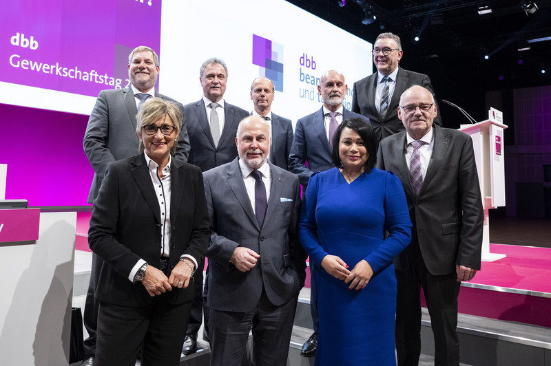 Am 28. November 2022 wählte der Gewerkschaftstag als höchstes Beschlussgremium des dbb eine neue Bundesleitung. Sowohl dbb Chef Ulrich Silberbach als auch der Zweite Vorsitzende und Fachvorsand Beamtenpolitik Friedhelm Schäfer sowie der stellvertretende Vorsitzende und Fachvorstand Tarifpolitik Volker Geyer wurden in ihren Ämtern bestätigt. Komplettiert wird die neue Bundesleitung des dbb durch die weiteren stellvertretenden dbb Bundesvorsitzenden Simone Fleischmann (Verband Bildung und Erziehung - VBE), Andreas Hemsing (komba gewerkschaft), Milanie Kreutz (Deutsche Steuergewerkschaft – DSTG), Heiko Teggatz (DPolG Bundespolizeigewerkschaft – DPolG), Maik Wagner (Gewerkschaft der Sozialversicherung – GdS) und Claus Weselsky (Gewerkschaft Deutscher Lokomotivführer – GDL). Qua Amt gehören der dbb Bundesleitung zudem als beratende Mitglieder ohne Stimmrecht die Vorsitzenden der dbb jugend, Matthäus Fandrejewski, und der dbb bundesseniorenvertretung, Horst Günther Klitzing, an.