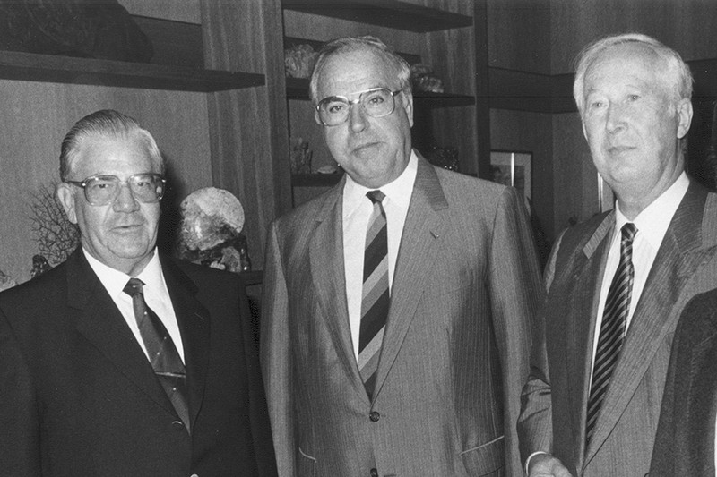 In einem "Vier-Augen-Gespräch" erörtert der DBB-Bundesvorsitzende Werner Hagedorn am 14. Dezember 1987 mit Bundeskanzler Dr. Helmut Kohl im Bonner Kanzleramt aktuelle berufspolitische Fragen.