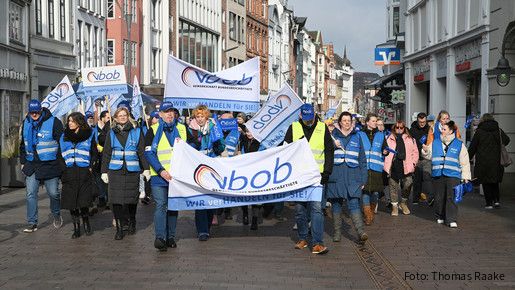 Etwa 400 Beschäftigte des öffentlichen Dienstes sind am 5. März 2025 in Hamburg auf die Straße gegangen, um ihre Forderungen in den laufenden Tarifrunden zu